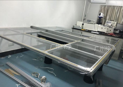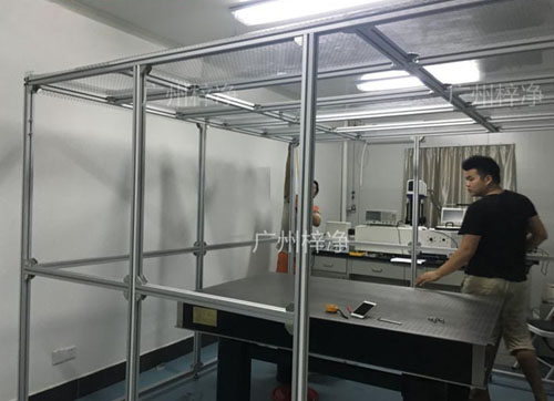 材料以鋼方通噴塑作為框架,采用風機濾網機組FFU送風,凈化棚四周圍用防靜電垂簾,頂部鋪蓋密縫盲板,形成一個密縫區,內部凈化級別可達10—100000級;特別適用于車間內局部凈化級別要求高的區域,如流水線作業區域。高精確度產品組裝區。技術人員正在安裝千級潔凈棚千級潔凈棚|1000級潔凈棚特點: