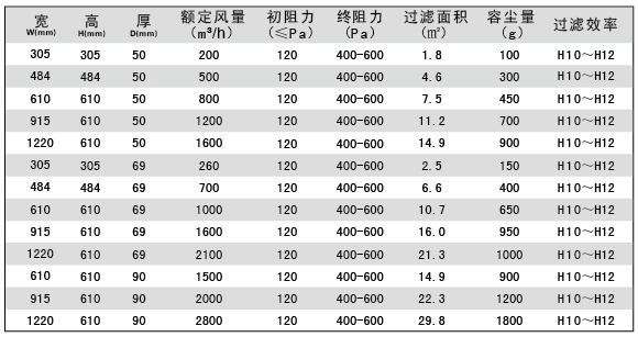 選購指南-無隔板亞高效過濾器技術(shù)參數(shù)