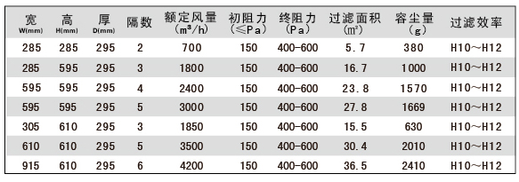用戶選購指南-組合式亞高效過濾器技術參數