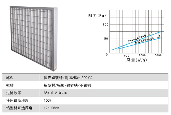 耐400℃高溫高效過濾器材料說明: